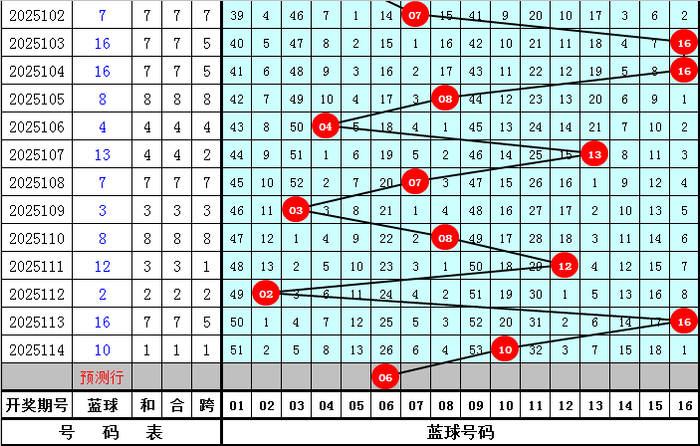 蓝球奇偶:近50期蓝球奇偶比为24:26,奇偶蓝球开出比例基本相当,近10期蓝球奇偶比为3:7,偶数蓝球活跃,本期蓝球防偶数号码06、10。