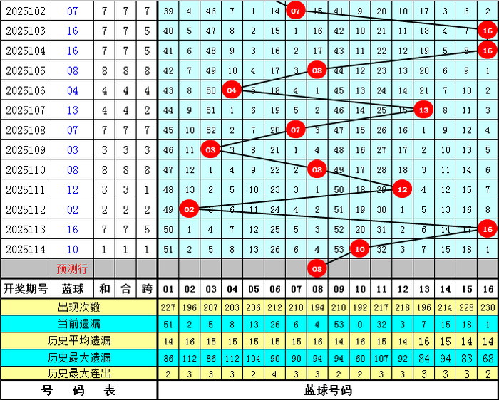 蓝球:上期蓝球号码为10,开出偶数、大号,蓝球最近7期大小比为3:4,本期注意小 号蓝球出现,蓝球关注08。